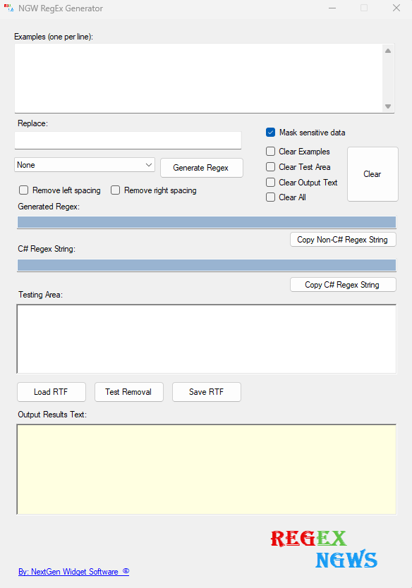 NGW RegEx Generator by NEXTGEN WIDGET SOFTWARE