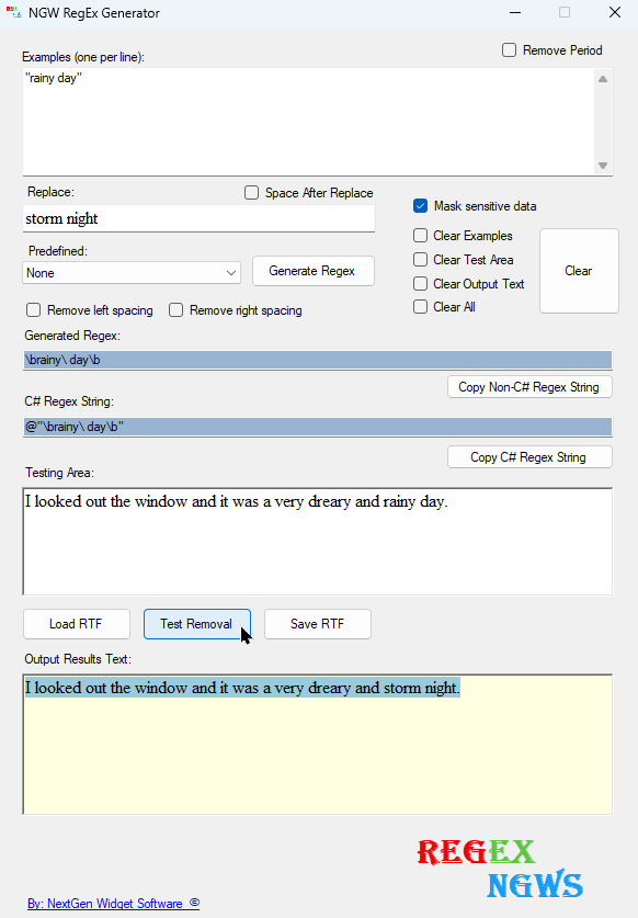 4. Next, click the "Generate Regex" button and then "Test Removal" button.